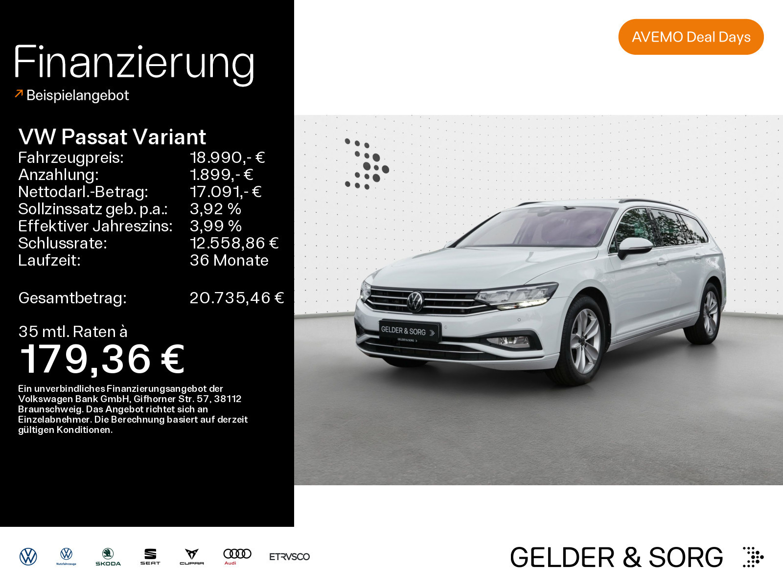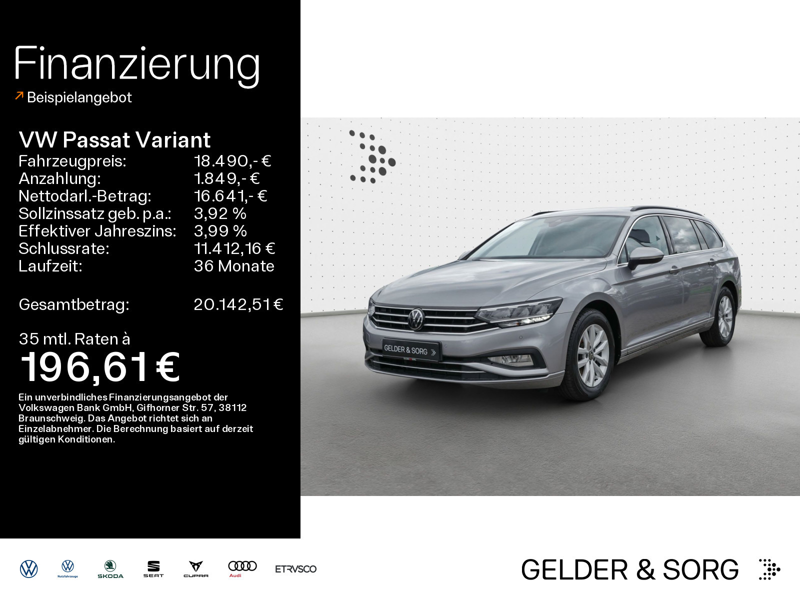 ³ 3,99%: Ein Angebot der Volkswagen Bank GmbH, Gifhorner Str. 57, 38112 Braunschweig. Bonität vorausgesetzt. Gültig bis zum 31.03.2026 für aktionsberechtigte Gebrauchtfahrzeuge aus dem Verkaufsbestand der Marke Volkswagen. Sollzinssatz (gebunden) p. a. 3,92 %, effektiver Jahreszins 3,99 %, Laufzeit 12-36 Monate. Es besteht ein gesetzliches Widerrufsrecht für Verbraucher. Nur bei teilnehmenden Volkswagen Partnern. Beispielhafte Fahrzeugabbildung zeigt Sonderausstattungen.
