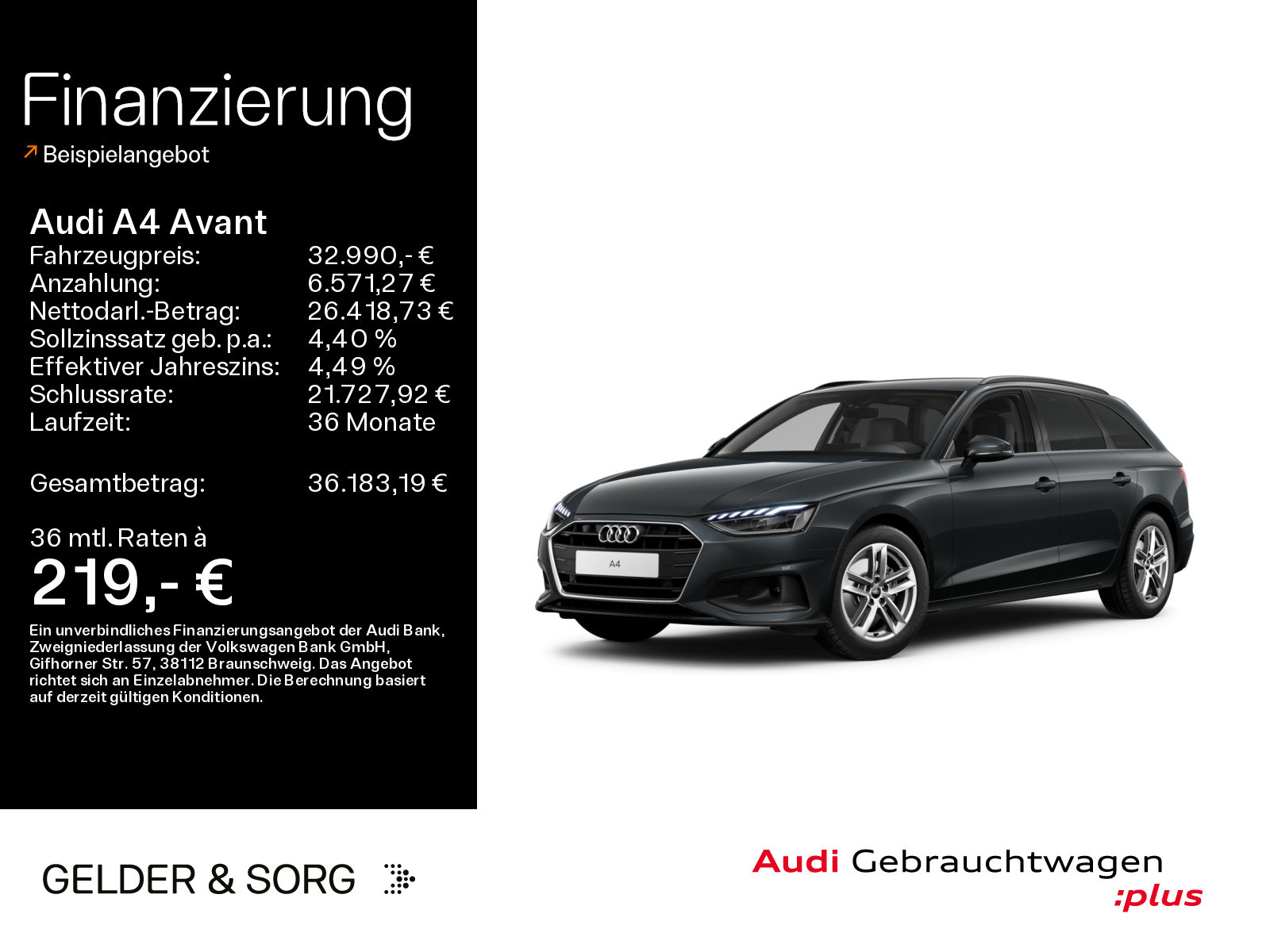 Das Fahrzeug findest du an folgendem Standort: Gelder & Sorg Audi Autohaus