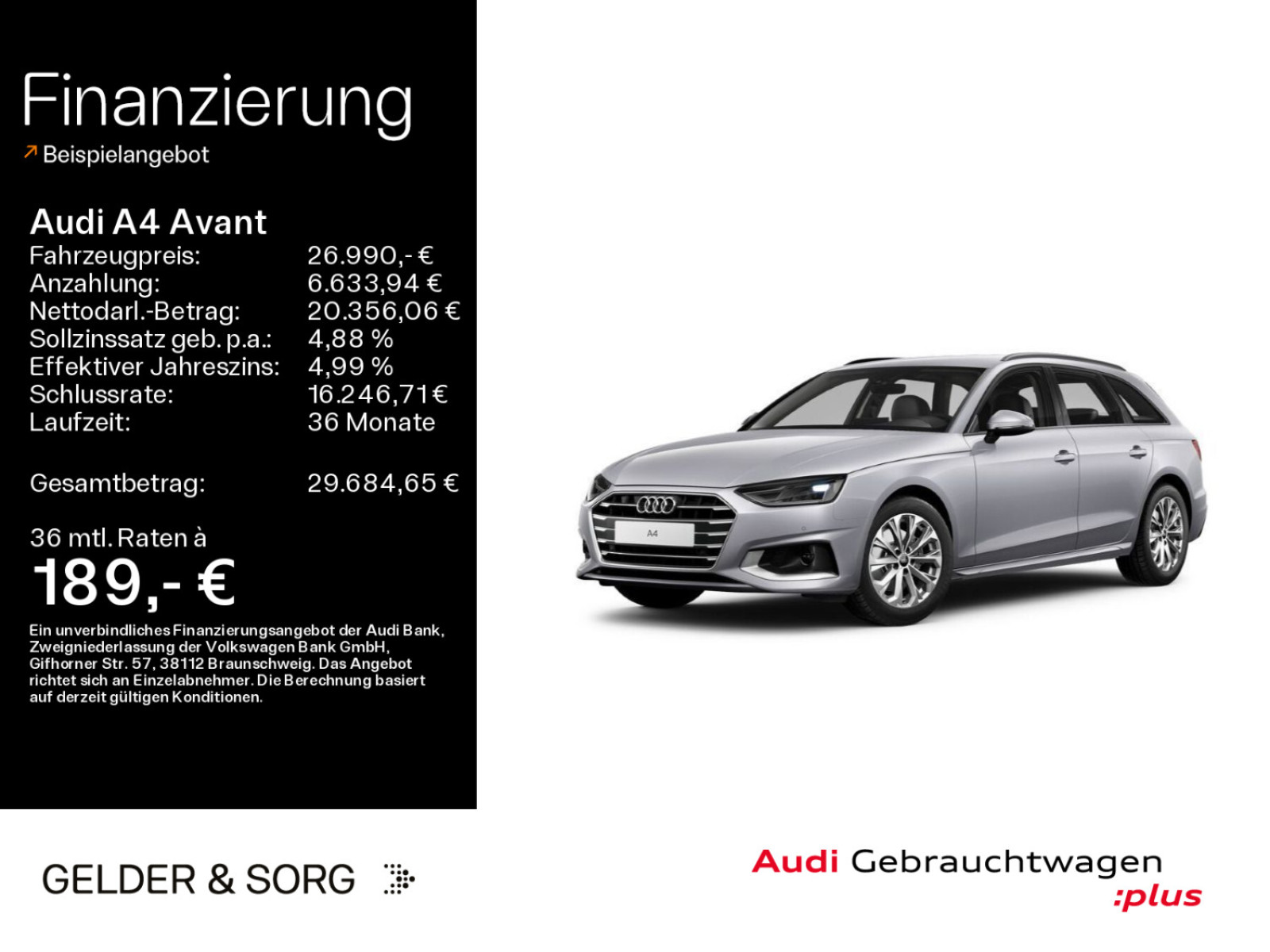 Das Fahrzeug findest du an folgendem Standort: Gelder & Sorg Audi Autohaus