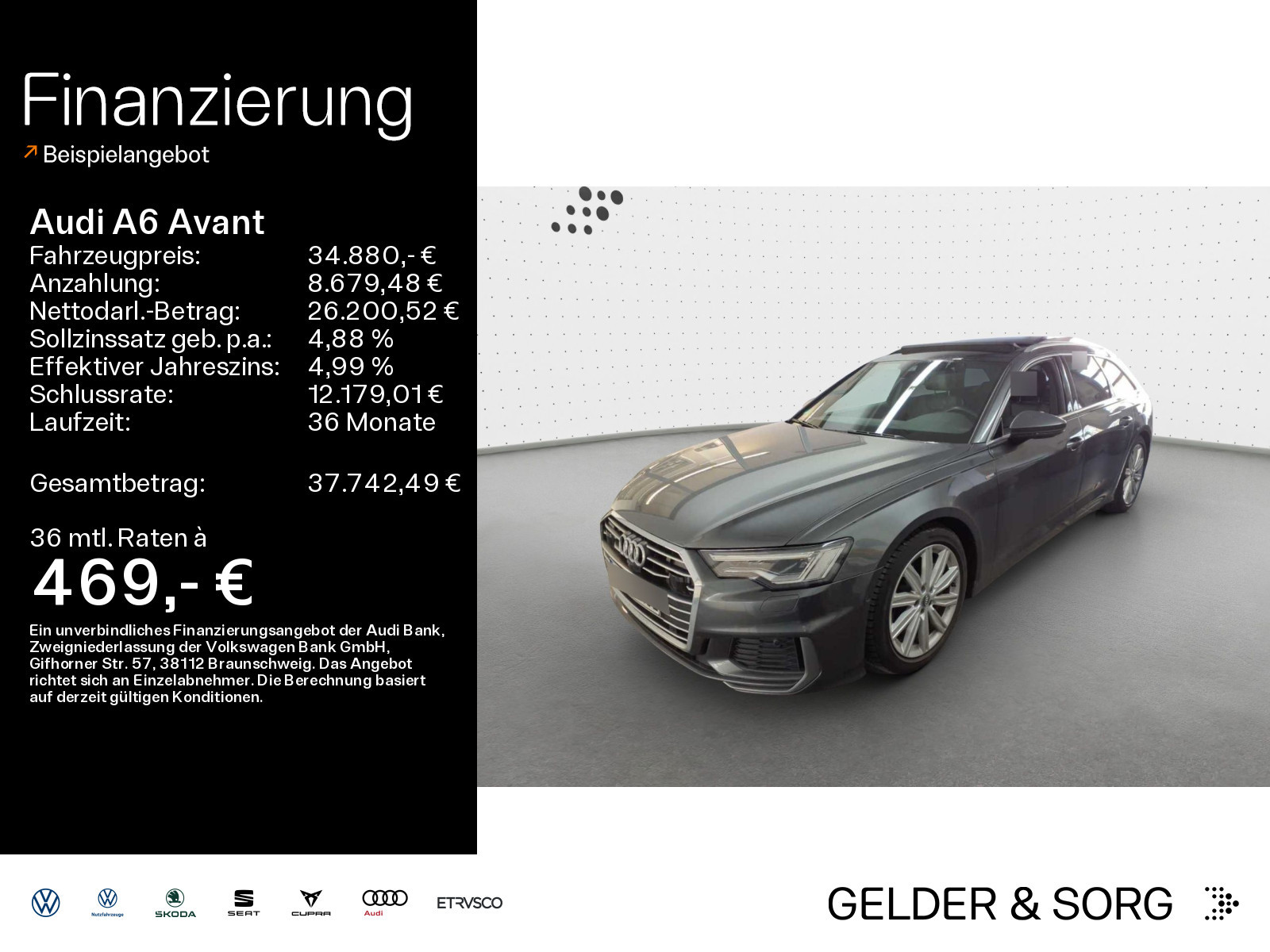 Das Fahrzeug findest du an folgendem Standort: Gelder & Sorg Audi Autohaus