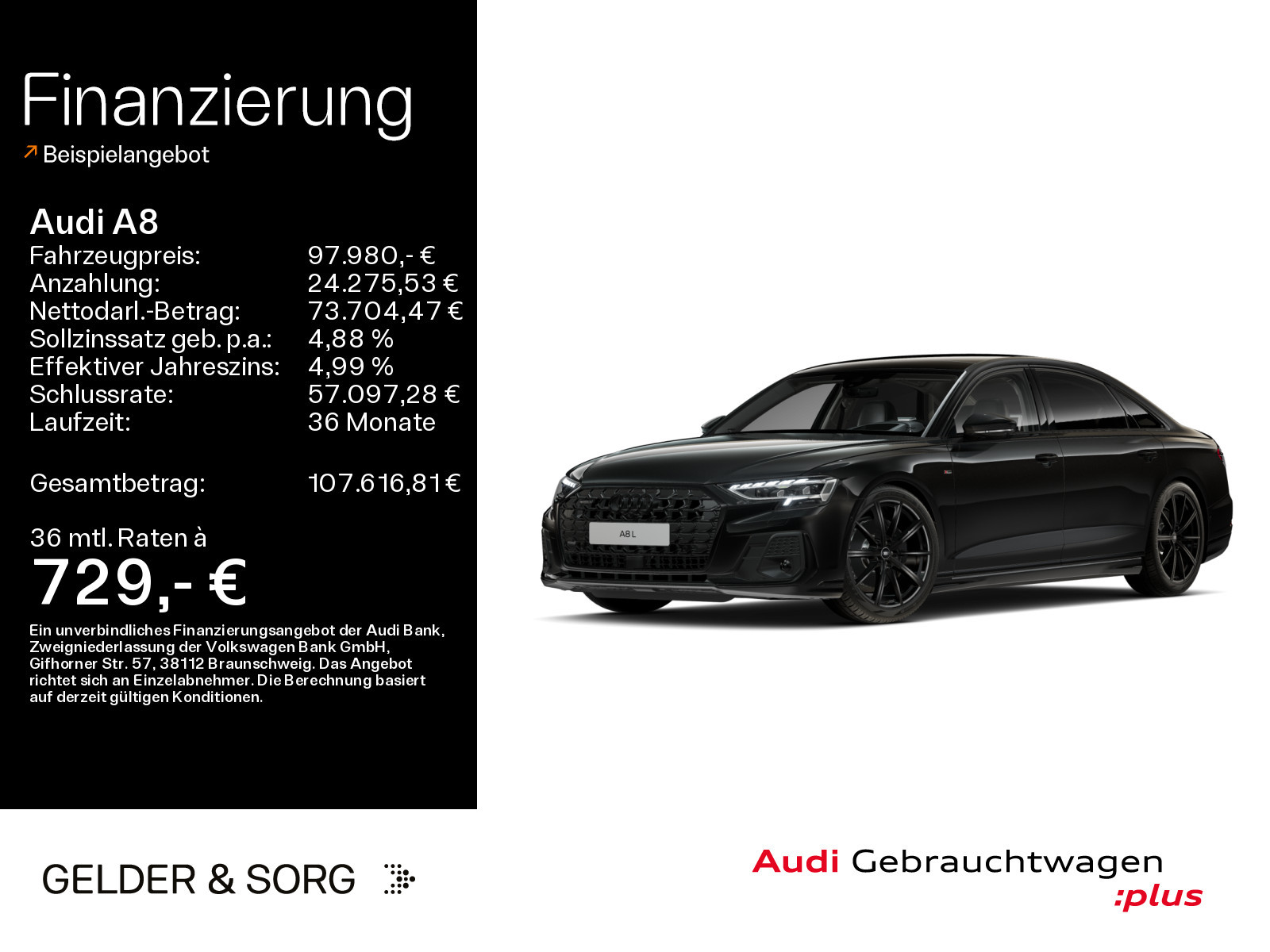 Das Fahrzeug findest du an folgendem Standort: Gelder & Sorg Audi Autohaus