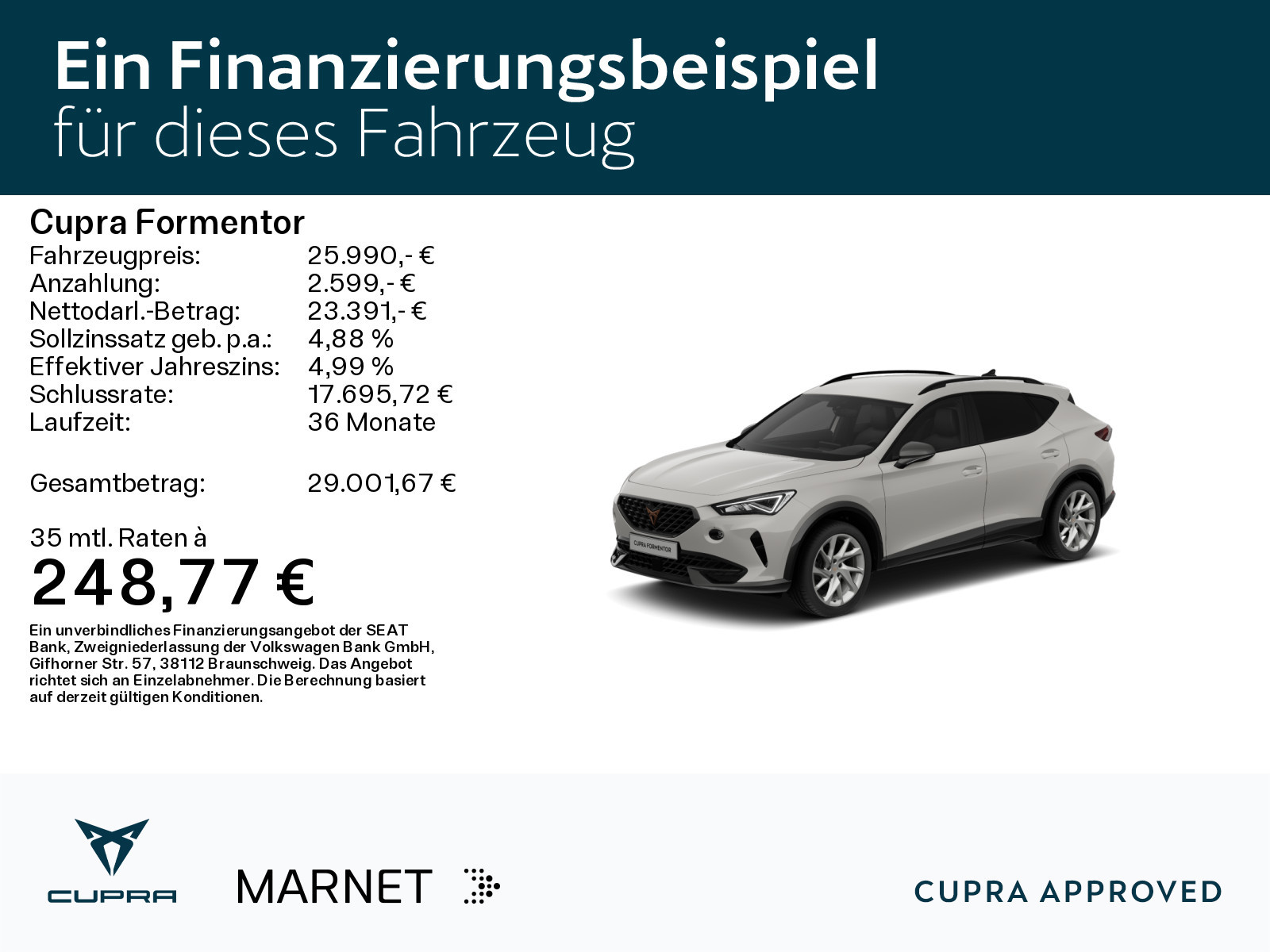 Das Fahrzeug findest du an folgendem Standort: Marnet SEAT & CUPRA Garage
