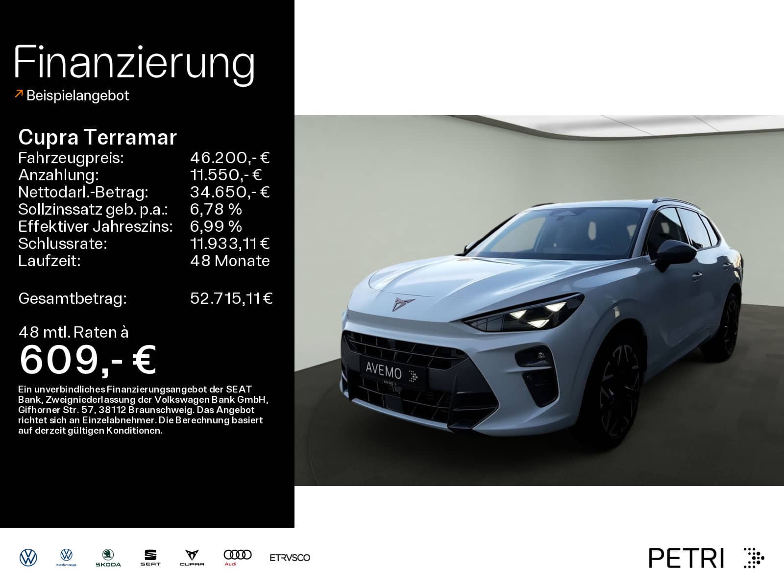 Das Fahrzeug findest du an folgendem Standort: Petri SEAT & CUPRA Garage